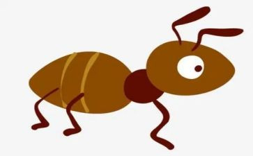 蚂蚁个头不大,只有一粒米那么大。全身呈黑色、白色或棕色,长着小小的脑袋,头上长着两根触角,有六条腿。蚂蚁是群居居生活,只有找食物时才会单独出门;它们喜欢吃甜的东西。