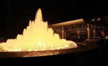 每逢节假日,广场上游人如织,喷泉随音乐节奏强弱快慢的变化,不停地喷射出一朵朵高低不同的水花。好像永远不会停止,永远不知疲倦,永远充满活力。你若立定静静地看上一会儿,便会觉得妙不可言:当音乐柔和舒缓时,喷泉微微荡起,又缓缓落下,犹如一群身披白纱的少女,正在舞池中翩翩起舞,又像一叶轻舟在碧波荡漾的海面上随波逐流。突然,音乐变得高亢激昂,喷池中一股股水柱射向空中,激溅四溢,恰似一枚枚火箭,喷着白烟腾空而起,又如仙女下凡,将一篮篮似烟似雾的花瓣撒向人群。最开心的是孩子们,欢天喜地地在水雾中欢呼雀跃。夜晚,池中的彩灯齐齐开放,与石柱顶上的射灯交相辉映。音乐喷泉在灯光的照耀下流光溢彩,一朵朵水花不断地变幻出七彩的光芒,令人如痴如醉。